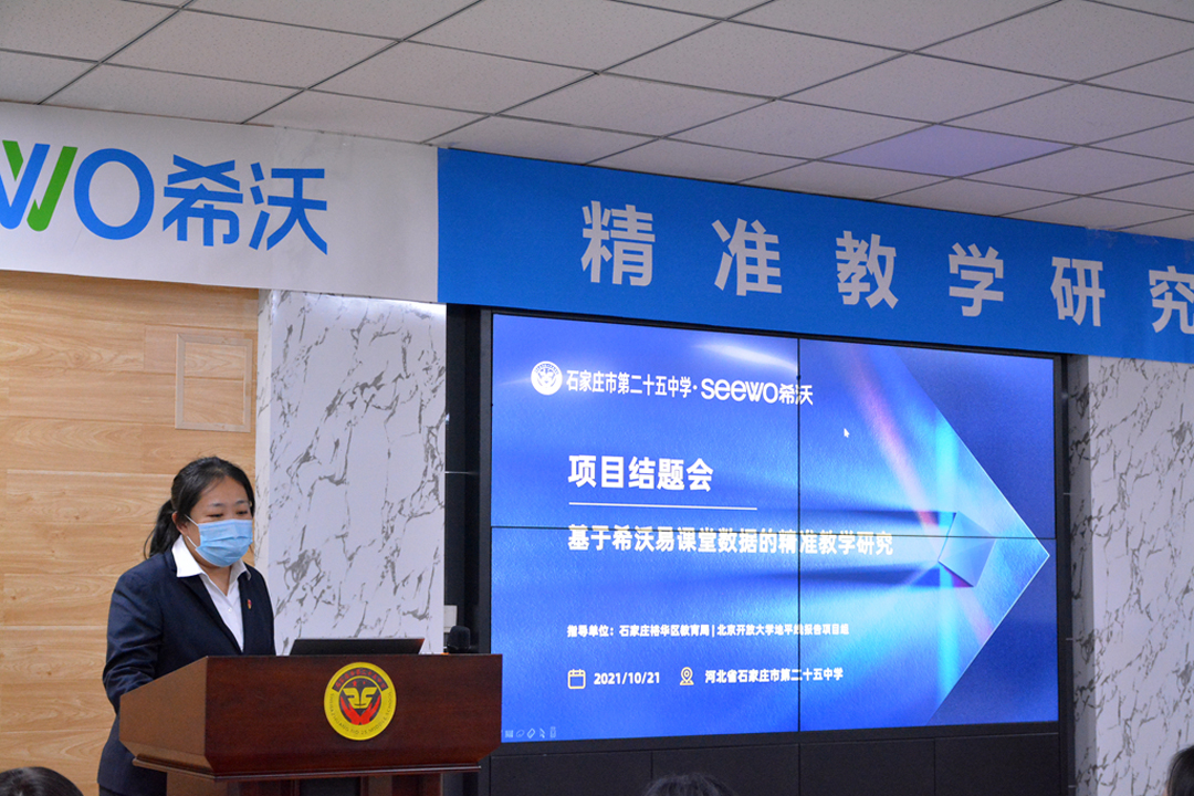 2020年9月由希沃教育研究院聯(lián)合北京開(kāi)放大學(xué)地平線報(bào)告項(xiàng)目組共同發(fā)起,由石家莊市裕華區(qū)教育局牽頭,石家莊市第二十五中參與的“希沃精準(zhǔn)教學(xué)課題”研究正式啟動(dòng)。一年來(lái),在各位專家和希沃教育研究院老師的幫助下,智慧教學(xué)班的教師們快速成長(zhǎng)起來(lái)。參與課題組的六位老師更是在多次的培訓(xùn)和磨課中快速掌握智慧課堂技術(shù),借助大數(shù)據(jù)把精準(zhǔn)教學(xué)應(yīng)用于教學(xué)實(shí)際,使我校的智慧課堂教學(xué)更上新臺(tái)階。2021年10月“基于希沃易課堂數(shù)據(jù)的精準(zhǔn)教學(xué)研究”項(xiàng)目順利結(jié)題。精準(zhǔn)教學(xué)課題研究為我校教改引領(lǐng)了方向,智慧教學(xué)在二十五中落地生根,開(kāi)創(chuàng)了信息化教學(xué)的新局面。