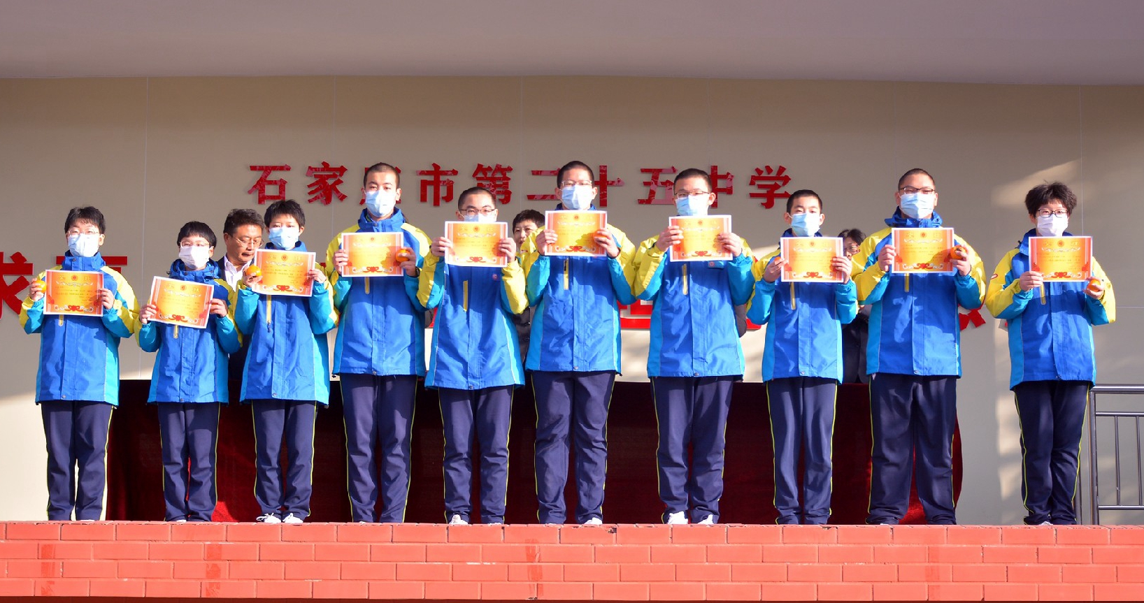 10月17日早晨,石家莊市第二十五中學(xué)全校師生在大操場舉行學(xué)科大賽數(shù)學(xué)學(xué)科頒獎活動,學(xué)校領(lǐng)導(dǎo)為獲獎學(xué)生頒發(fā)獎狀及獎品。